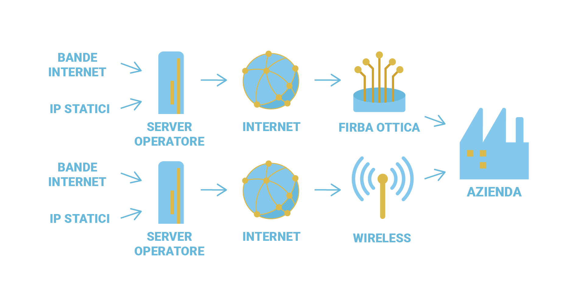 Lo schema su infrastruttura fisica e logica differente è un modo diverso di costruire i servizi di internet e telefonia aziendale.
